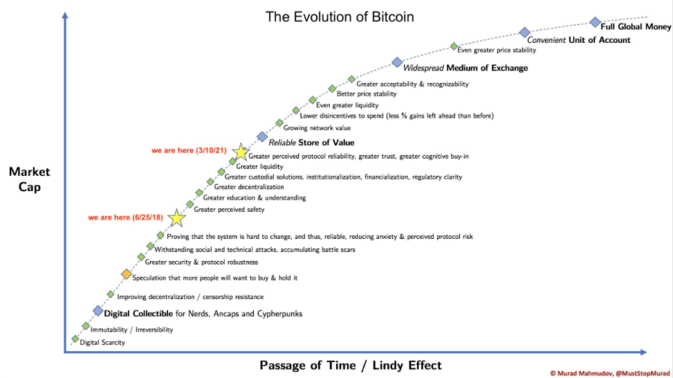 L’effetto Lindy teorizza che l’aspettativa di vita di un’idea o una tecnologia non deperibile è proporzionale all’età attuale. In altre parole: se sopravvive per 10 anni è altamente probabile che sopravviva altrettanti anni finché il tasso di mortalità diminuisce a zero. Con l’aumentare della capitalizzazione, in linea teorica, dovremmo anche aspettarci una diminuzione della volatilità.